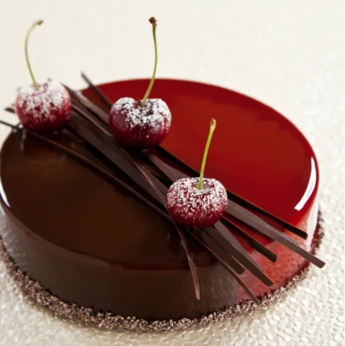 - 글라사주 미루아 (Glaçage Miroir): '미러 글레이즈'로 알려진 이 기술은 사실 수십 년 전부터 앙트르메(entremet)를 코팅하기 위해 사용되던 고전 기법이었다. 하지만 이 시기에 완벽하게 매끄럽고 거울처럼 반짝이는 표면이 현대적인 고급 파티세리의 상징으로 다시 주목받기 시작했다. 베린이 디저트의 내부 구조를 드러냈다면, 미러 글레이즈는 완벽한 외부 표면을 강조했다. 이 두 경향은 디저트를 맛의 대상을 넘어, 형태와 시각적 효과가 중시되는 하나의 건축적이고 추상적인 예술 작품으로 인식하게 만들었다.